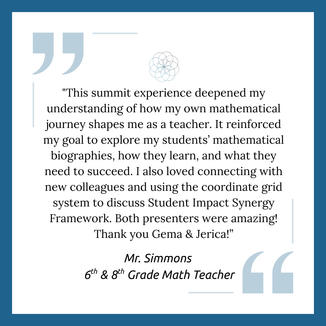 We collaborate closely with district, school, and teacher leaders to co-create vibrant S.T.E.M. learning environments where curiosity is nurtured, confidence grows, and every learner’s humanity is honored. Our offerings—including engaging workshops and summits, strategic planning, coaching cohorts, and inspiring keynotes—support educators in turning vision into practice and transforming math classrooms into spaces of joy, connection, and meaningful learning.
